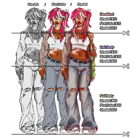 Listed prices are the base price (including for backgrounds); they may increase depending on the complexity and amount of details of the commission